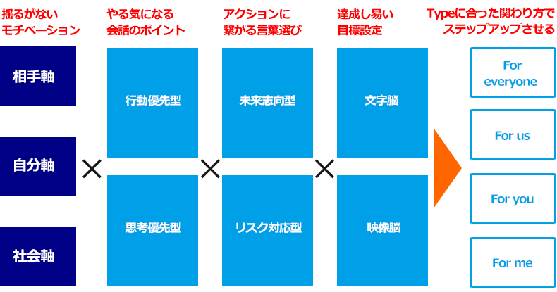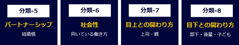 「向いている働き方」「目上との関係性」「目下との関係性」の8つのTYPEをお知らせ致します。
